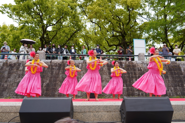 このような場で、広島校「マーラマ・マルヒア」(Mālama Maluhia=平和を守るハーラウ)の名のもとに踊らせていただけたことに、深く感謝しております。踊りを通して、平和への祈りと、フラを通じての心のつながりを届けることができたのではないかと思います。